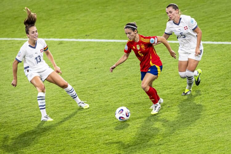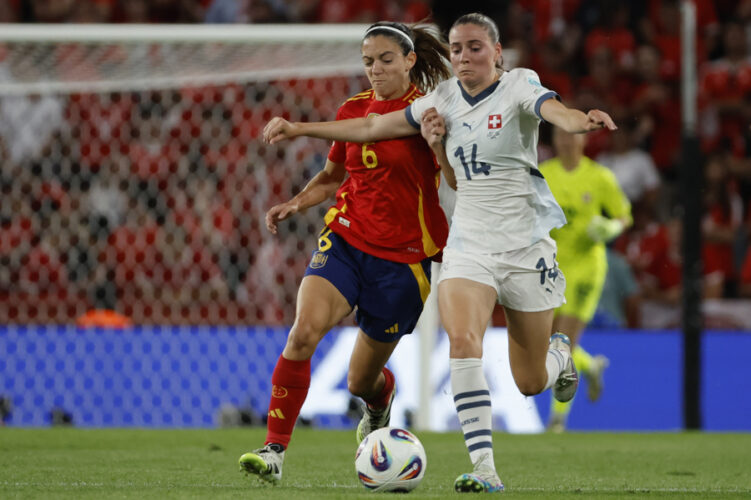 Spain nearly scored just before halftime. Irene Paredes hit the post with a header from a corner kick, and González’s attempt at an overhead kick was blocked.