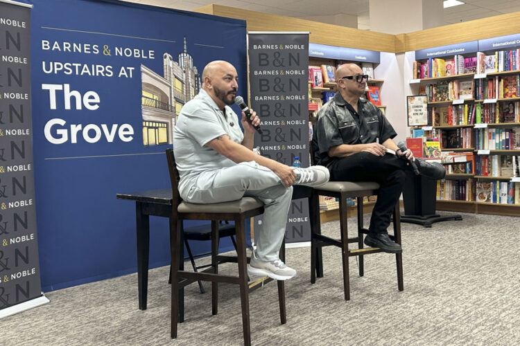 El cantautor mexicano Lupillo Rivera (i) fue captado este lunes, 22 de septiembre, durante la presentación de su autobiografía, en la popular librería Barnes & Noble, en Los Ángeles (CA, EE.UU.). EFE/Mikaela Viqueira