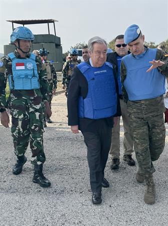 Este viernes, aprovechó su visita al sur del Líbano para aplaudir la labor de los 10.000 cascos azules desplegados en la zona y para explicarles que la organización tuvo muy en cuenta su seguridad cuando decidió mantenerles sobre el terreno durante la dura ofensiva israelí del pasado otoño.