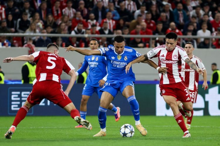 Kylian Mbappé of Real Madrid delivered an outstanding performance at the Karaiskakis Stadium on Wednesday in the Champions League, scoring four goals against Olympiacos, who came close with three (4-3).
